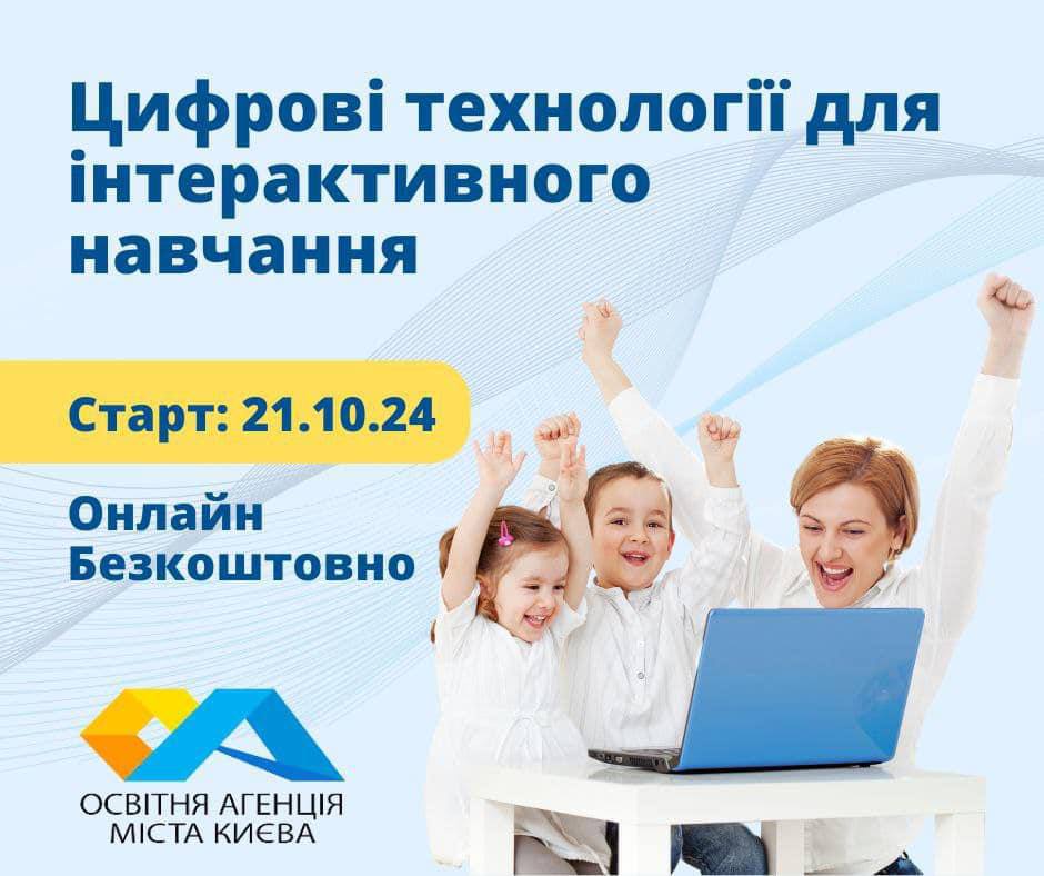 КНП «ОСВІТНЯ АГЕНЦІЯ МІСТА КИЄВА» запускає безкоштовний онлайн курс «Цифрові технології для інтерактивного навчання»27.09.2024